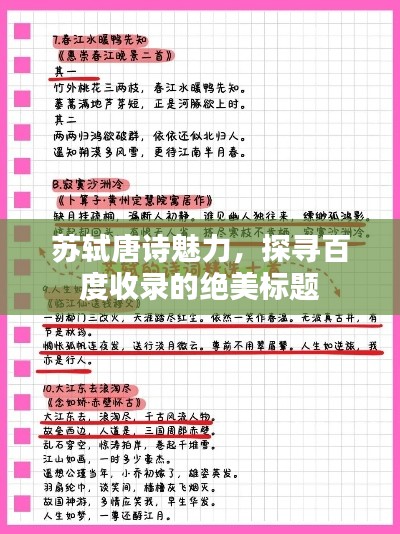 虽然苏轼以宋词著称,但他在唐诗领域的创作同样不容忽视,他的唐诗作品继承了唐诗的精髓,融入了自己独特的风格和情感,给人以美的享受和深刻的思考,通过百度一下苏轼的唐诗,我们不仅能够欣赏到他的诗歌之美,还能够感受到他的文学魅力、人生智慧和对自然的热爱。