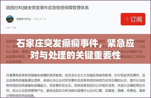 石家庄地区发生了一起突发癫痫事件,引起了社会各界的广泛关注,癫痫作为一种常见的神经系统疾病,其突发状况的处理与应对显得尤为重要,本文将围绕这一事件,探讨癫痫的突发状况、应对措施以及预防工作。