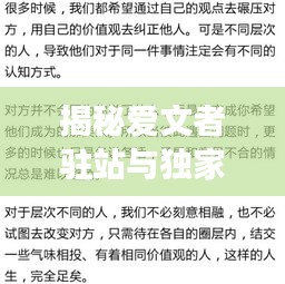 随着网络文学的发展,越来越多的作者和读者开始关注不同的写作和阅读平台,在众多平台中,"爱文者"是一个备受瞩目的名字,关于其驻站与独家的区别,也是许多作者和读者关注的焦点,本文将从多个角度阐述这两者之间的差异。