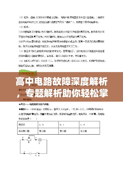 ,对于理解电流流动、电器设备工作原理以及解决实际应用问题具有重要意义,本文将围绕“高中电路故障专题”展开,帮助学生们深入理解电路故障的类型、原因及解决方法。