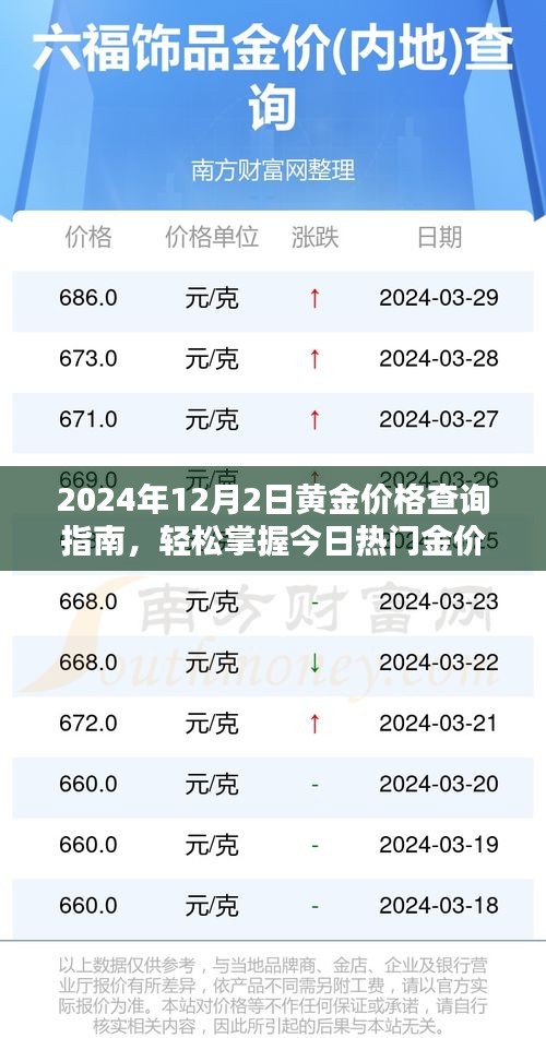 随着投资市场的日益繁荣,黄金作为一种重要的投资工具,其价格动态备受关注,对于初学者和进阶用户来说,了解黄金价格走势和查询今日金价变得尤为重要,本文将指导读者如何查询2024年12月2日的黄金价格,掌握今日热门金价,以便做出明智的投资决策。