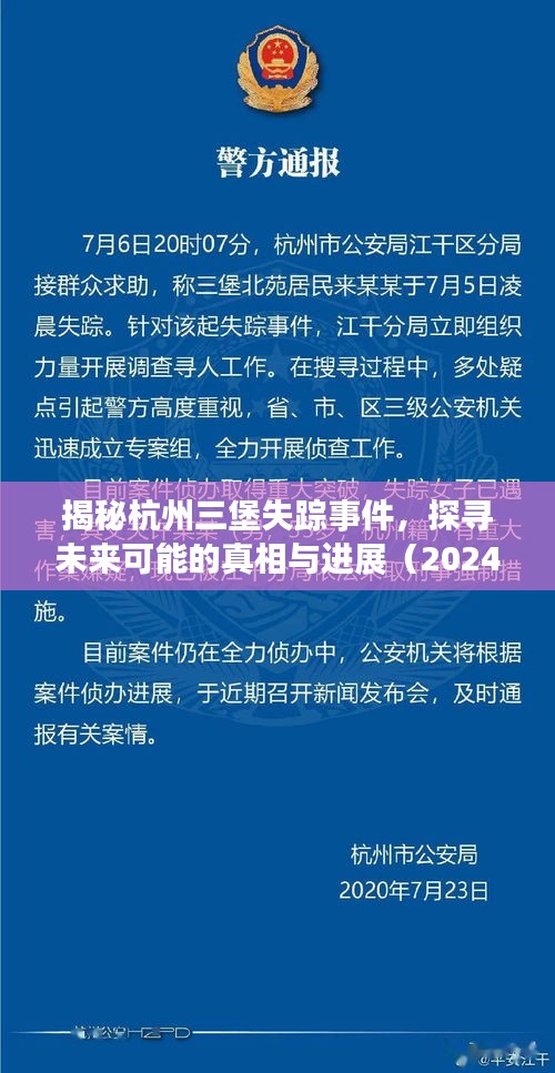 摘要:本文将揭示杭州三堡失踪事件的神秘面纱,从失踪事件的背景出发,探寻未来可能的真相与进展。文章以2024年的视角,结合当前科技手段和调查进展,对事件进行深入剖析,以期为读者呈现真相。本文也将关注事件对社会的影响以及公众对此的关注程度。