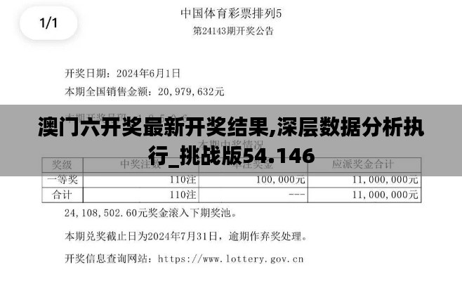 澳门六开奖一直以其独特的魅力吸引着大众的注意力,通过对最新开奖结果的深层次分析,我们可以归纳出一些有助于投注决策的规律和模式,我们涵盖了澳门六开奖最新开奖结果的一个全面解析,以及深层数据分析在挑战版54.146中的应用。