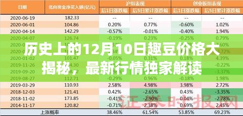 摘要:本文将揭示历史上12月10日趣豆价格的奥秘,并独家解读最新行情。通过深入研究市场趋势、供求关系以及价格变动背后的原因,本文为读者提供了一个全面的视角,了解趣豆价格的演变。阅读本文,您将更深入地了解趣豆价格的真相。