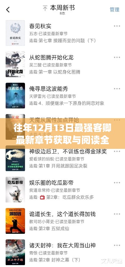 对于喜欢网络小说的读者来说,获取最新章节的信息是一个既刺激又充满期待的过程,本攻略将指导读者如何找到往年12月13日发布的“最强客卿”最新章节,无论是初学者还是进阶用户,都能轻松上手。