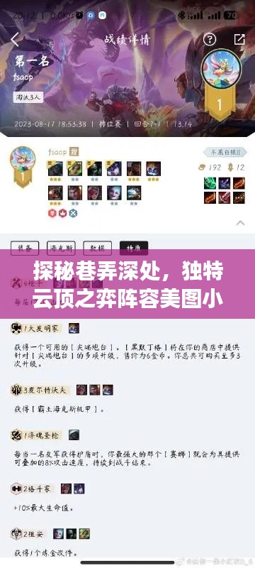 摘要:在巷弄深处隐藏着一家独特的小店,专门展示云顶之弈的阵容美图。这家小店汇集了众多游戏爱好者的创意和热情,展示了各种精彩的云顶之弈阵容组合。走进小店,你可以欣赏到精心制作的美图,感受到游戏世界的无限魅力。这里不仅是游戏爱好者的聚集地,也是探秘云顶之弈阵容的绝佳场所。
